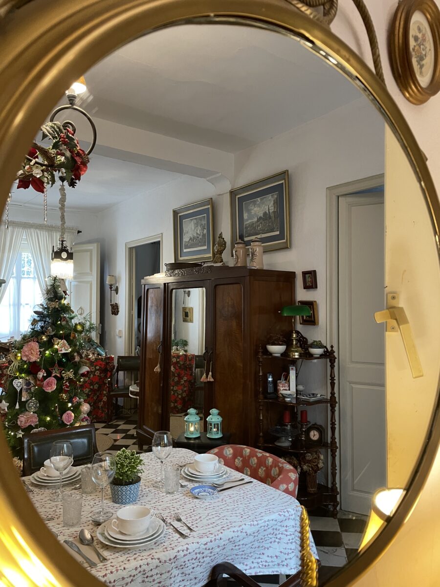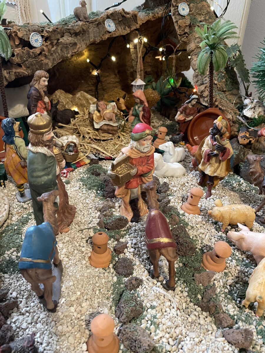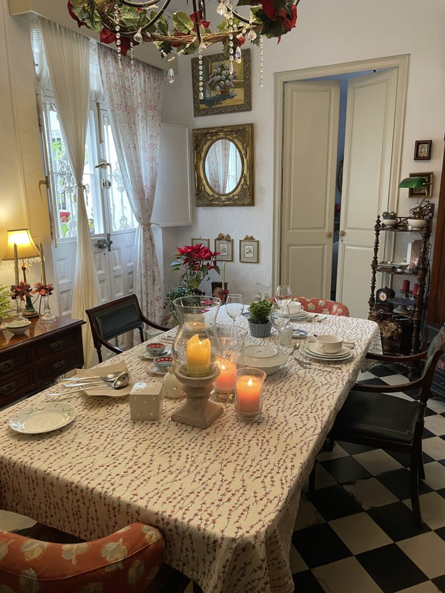 We hebben zeker een kwartier nodig om de hele woonkamer in ons op te nemen. Overal staat een stukje familiegeschiedenis en de reusachtige belén (kerststal) die de halve woonkamer inpalmt, maakt het spektakel compleet.