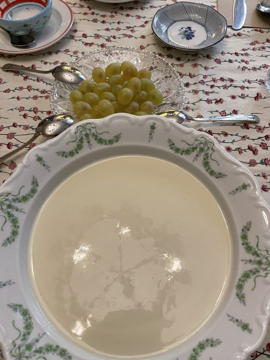 Het meest beklijvende dat op tafel komt zijn de verhalen van Maria-Pepa wanneer ze met een glas cava toast op de goede afloop en bij het gezelschap aanschuift. Een verhaal over hoe haar grootvader een lotje wisselde met zijn overbuurman in de trein en dat later het grote winnende lot bleek te zijn. Zo kon hij de cortijo kopen waar hij als kind met de trein vaak voorbijkwam. Ze vertelt over de creatieve manier waarop ze in financieel moeilijke periodes het domein in familiehanden hield en tot op vandaag probeert te onderhouden. Over hoe haar vader zonder pardon haar huwelijk regelde terwijl ze nog een jong meisje was. Met al die verhalen komen alle prullaria, beeldjes en foto’s in de woonkamer tot leven en dat maakt dit concept zo mooi. Voor de ‘gewone’ kost die op tafel komt lijkt de prijs wat aan de hoge kant, maar de geschiedenis en gastvrijheid van een Spaanse familie die je erbij krijgt, is onbetaalbaar. Om naar het toilet te gaan moet ik door de slaapkamer van Mari-Peppa sluipen, intiemer kan je het bijna niet hebben.