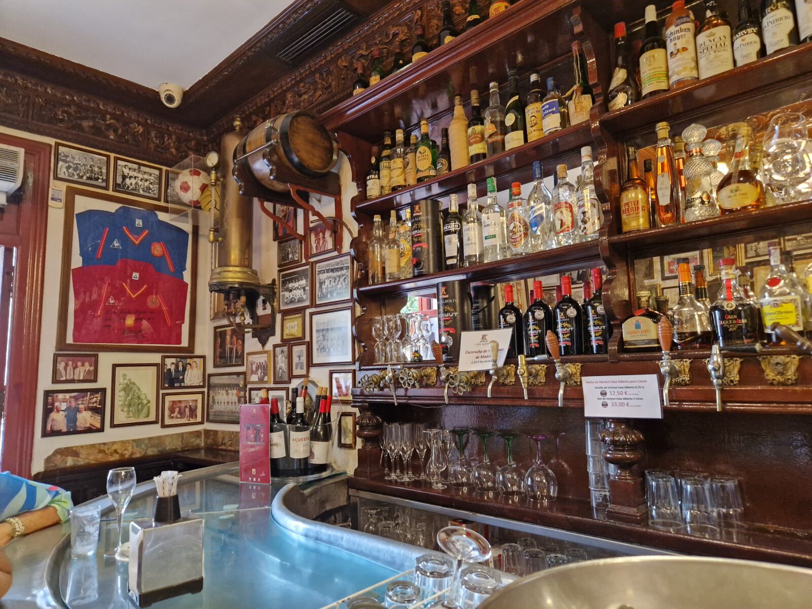 Met een lege maag staan we voor Casa Alberto, een traditionele tapasbar en restaurant. Het zit vol, een mooie mix van toeristen en vaste klanten. We wachten aan de bar op een plekje, met een drankje en tapas. Je kijkt je ogen uit, honderden flessen met allerlei drankjes staan in mooie houten kasten uitgestald, de bar is versierd met marmer en koper, overal aan de muren is iets te zien. De sfeer is vrolijk en luidruchtig, obers rennen bijna met volle borden, glazen en mandjes brood en hebben ook nog tijd voor een grapje. Na het -overvloedige – eten gaan we met de restanten in de rugzak weer op weg.