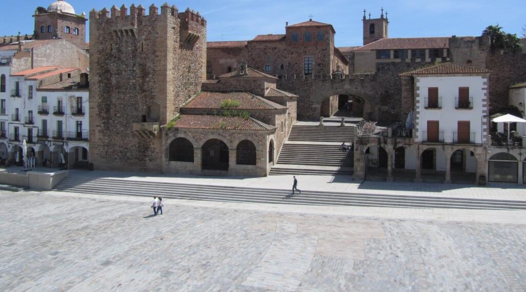 In dit gedeelte van de stad zijn de oude 16e eeuwse adellijke huizen met wapenschilden en grote patio’s, hoge torens, bogengalerijen en bochtige klinkerstraten. Plaza Mayor is hét centrum van de stad met een indrukwekkend stadhuis. Je vindt hier o.a. de Torre de Bujaco, de klokkentoren uit de 12 eeuw die onderdeel is van de oude stadsmuur. Vanaf deze plek is het mogelijk een deel van de oude stadsmuur te bewandelen waarvandaan je een prachtig uitzicht hebt.