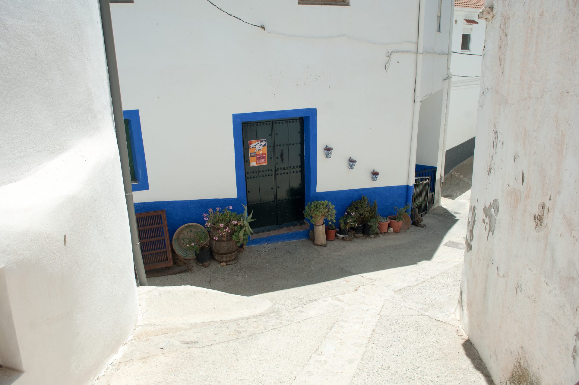 Afijn, nadat we gedag hebben gezegd tegen de lady en ook alles weten over haar persoonlijke leven, drinken we een kop koffie bij het barretje. We krijgen, zoals overal in Spanje, een lekkere tapa van het huis. En het valt ons op dat we hier de enigen zijn. Hierna wandelen we door de smalle bergachtige straatjes van Polopos. We passeren diverse casas uit het programma. Casa 1, 2, 3, 4, 5 hangt alleen naast hun voordeuren. En een affiche van de Polopos-route, die wij niet volgen. Het gaat ons er niet om om de Nederlandse deelnemers te ontmoeten en selfies met ze maken. Wij willen vooral de sfeer proeven van dit typische Spaanse dorpje.
