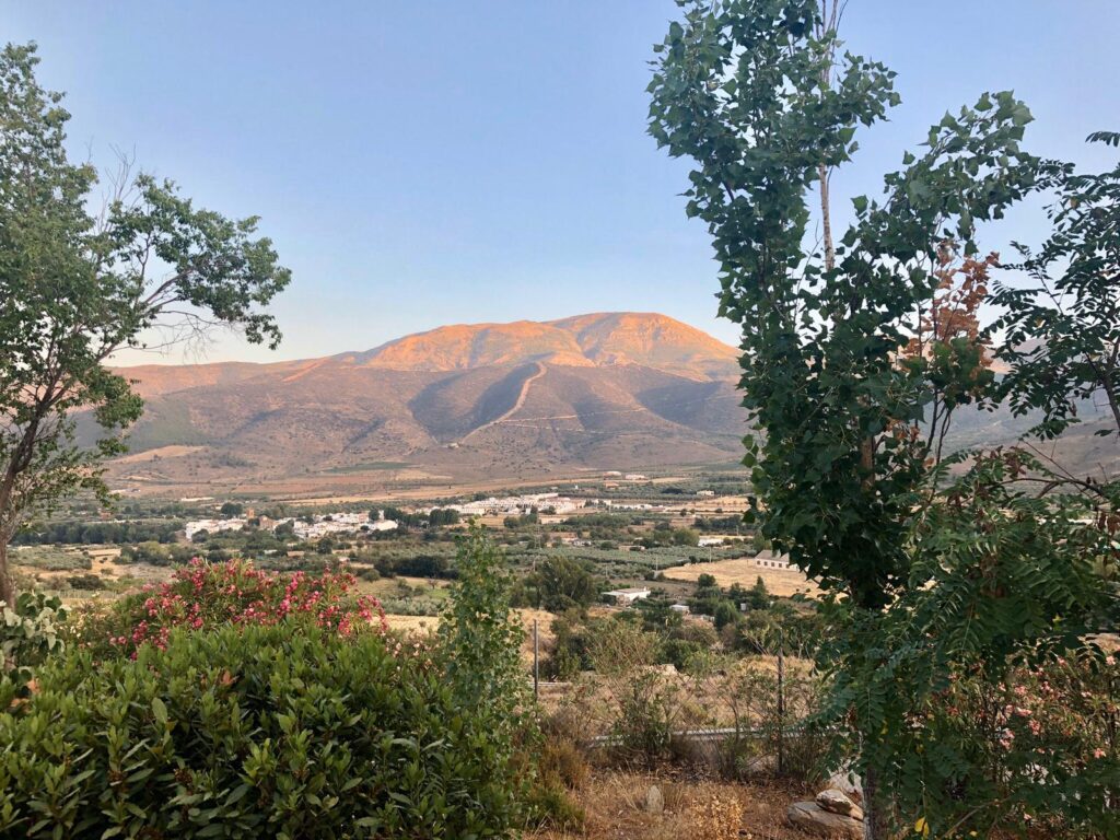 Hierna slenteren we door de smalle straatjes en zien we de waterbronnen waar Ina, de eigenaresse van Cortijo Blanco ook het water tapt . We stoppen telkens tijdens onze wandeling door dit schattige dorpje, om ons te verwonderen over het prachtige uitzicht op de vallei en La Muela, de kies. Op het bankje voor el hospital (in Nederland is dat gewoon de huisarts) zitten drie oude mannetjes te wachten in de schaduw. Beter een wachtrij buiten dan binnen, toch? Ik loop de farmacía in om een spulletje te kopen voor een vriendin en word super vriendelijk te woord gestaan. Pinnen? Nee, hahaha, dat lukt niet. Gelukkig heb ik in Spanje altijd genoeg contanten, want dit weten we inmiddels.