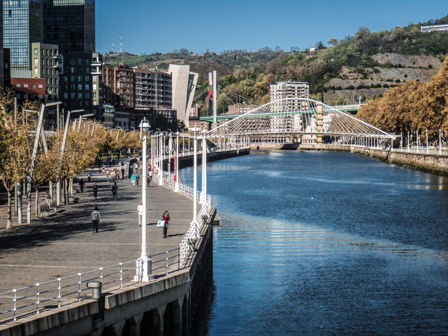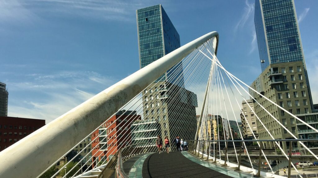 De Zubizuri is een voetgangersbrug die beide oevers van de Nervión met elkaar verbindt. Hierdoor wordt het oude centrum van Bilbao verbonden met het nieuwere gedeelte van de stad. Aan de ene kant van de oever staat het Guggenheim museum, dat samen met deze brug ervoor moest zorgen dat Bilbao als stad een meer moderne uitstraling zou krijgen. De Zubizuri is één van de nieuwere architectonische ontwerpen in de stad en verandert langzaam in het boegbeeld voor een moderner Bilbao. Een beetje zoals onze Erasmusbrug in Rotterdam.