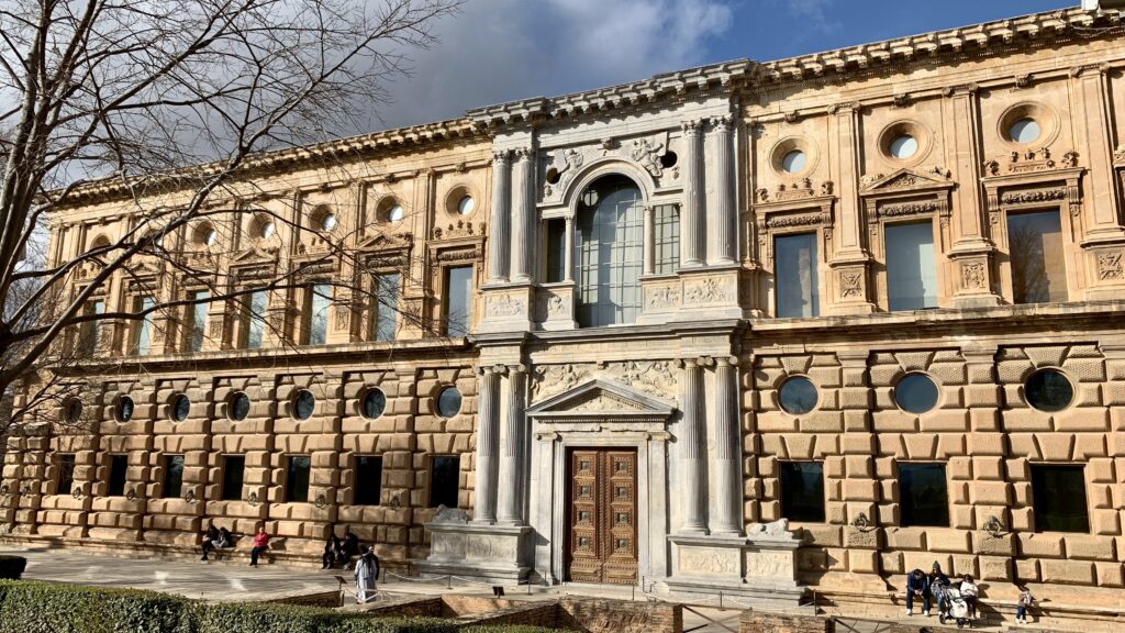 Dit enorme vierkante paleis in renaissancestijl werd in opdracht van Karel V gebouwd in 1527 (dus na de herovering op de Moren) en ligt middenin het Alhambra. Opvallend is de grote cirkelvormige binnenplaats met twee zuilengalerijen. Doordat het in renaissancestijl is, vind ik het wat uit de toon vallen, maar als je er toch bent, loop dan even naar binnen (is gratis). De grote ronde patio is zeker indrukwekkend. In dit paleis vind je bovendien twee interessante musea: