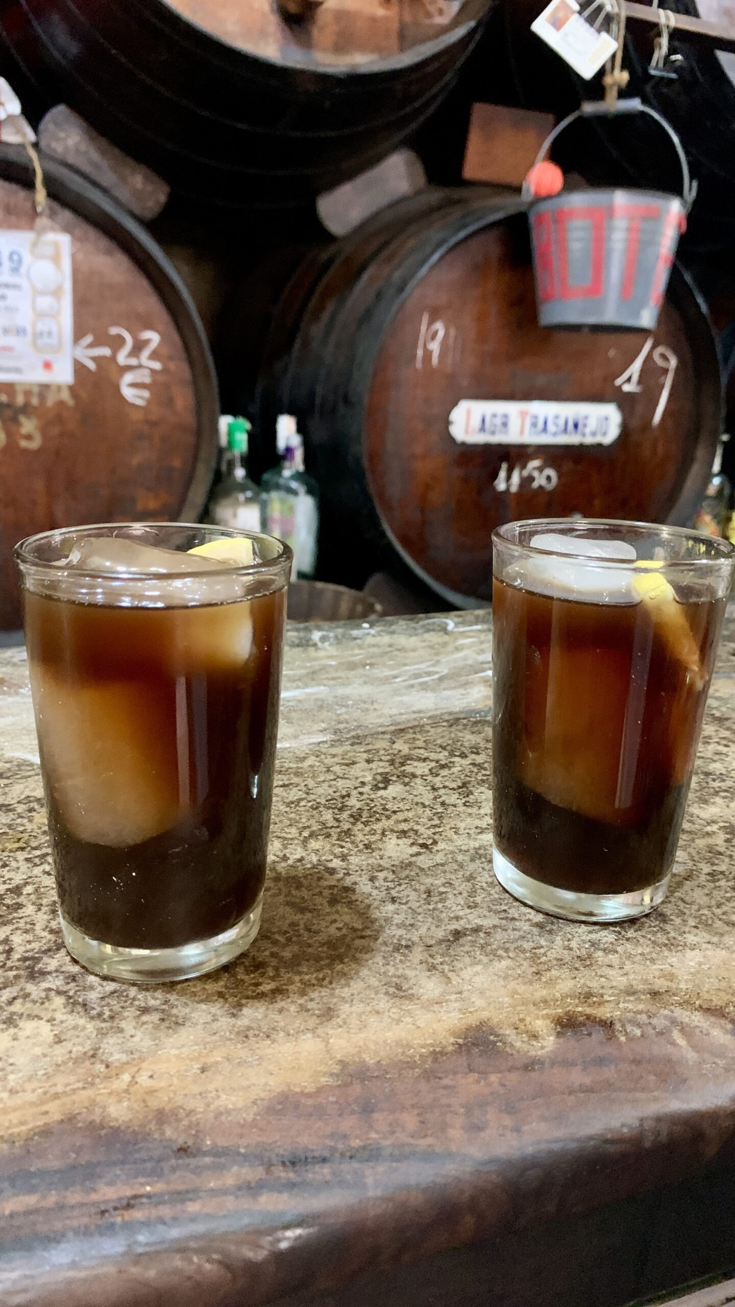 Terwijl ik mijn ogen uitkijk in deze geweldige authentieke bar en de zoete alcoholische geur van de Málaga-wijnen mijn neus binnendringt, bestelt Ingrid twee vermuth (vermout); manlief slaat even over, want hij is de Bob en het alcoholpromillage van deze wijnen is behoorlijk hoog. De ober schrijft met een krijtje op de toonbank (zo leuk) het bedrag dat we moeten afrekenen. We proosten buiten in het straatje met onze flinke limonadeglazen vermuth. Ik kan me niet herinneren dat ik het ooit eerder heb gedronken, maar ik ben een enorme zoetekauw – houd van Moscatel en Martini – dus dit kruidige zoete drankje is zeker aan mij besteed.